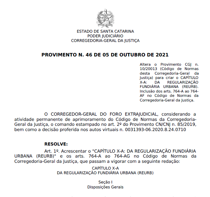 REGULARIZAÇÃO FUNDIÁRIA URBANA AVANÇA EM SC COM NOVA NORMATIVA DA CGJ-EXTRAJUDICIAL