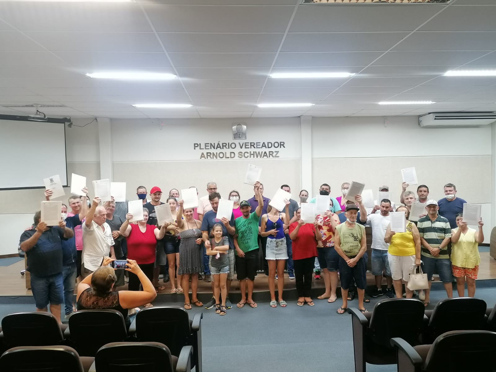 [vc_row css=”.vc_custom_1459507906849{margin-bottom: 100px !important;}”][vc_column offset=”vc_col-lg-9 vc_col-md-9″ css=”.vc_custom_1452702342137{padding-right: 45px !important;}”][vc_custom_heading source=”post_title” use_theme_fonts=”yes” el_class=”no_stripe”][stm_post_details css=”.vc_custom_1616248576337{border-radius: 15px !important;}”][vc_column_text css=”.vc_custom_1646765034920{margin-bottom: 20px !important;}”]Na última segunda feira, dia 07 de março, o município de Dona Emma, entregou as matriculas individualizadas de mais dois núcleos, contemplando 26 famílias das áreas Tilmann e Hasckel, assim como as ruas que passaram a domínio público.