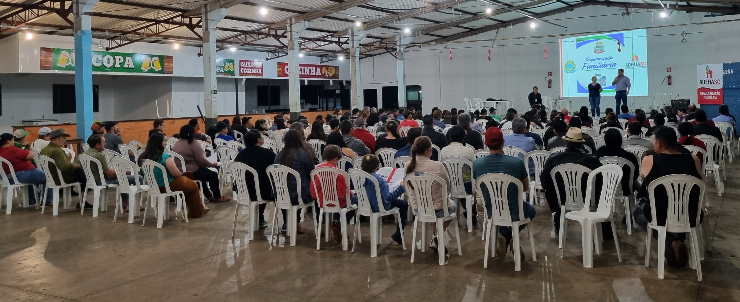 A ADEHASC, realizou no dia 11, de agosto, no Salão da Paróquia Cristo Rei, a Audiência Pública com a participação de aproximadamente 200 moradores do núcleo Nova Conquista, no município de Lindoeste, Paraná.