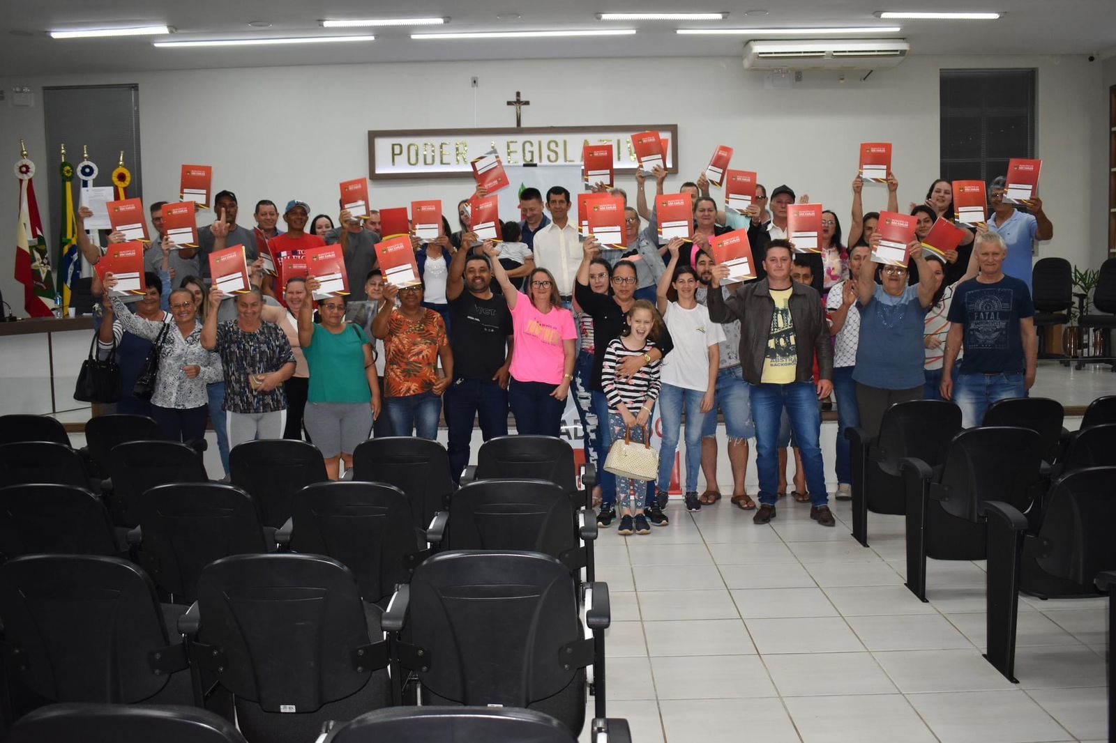 [vc_row css=”.vc_custom_1459507906849{margin-bottom: 100px !important;}”][vc_column offset=”vc_col-lg-9 vc_col-md-9″ css=”.vc_custom_1452702342137{padding-right: 45px !important;}”][vc_custom_heading source=”post_title” use_theme_fonts=”yes” el_class=”no_stripe”][stm_post_details css=”.vc_custom_1616248576337{border-radius: 15px !important;}”][vc_column_text css=”.vc_custom_1665076762883{margin-bottom: 20px !important;}”]Na noite da última quarta-feira, dia 05 de outubro, o município de São Carlos/SC, realizou a entrega das matriculas individualizadas para os moradores do Núcleo Tancredo Neves, em uma parceria com a ADHEASC. Foram emitidas 54 matrículas para os lotes, e 3 matrículas para as ruas que passaram a ser do domínio público, no total foram emitidas 57 títulos.