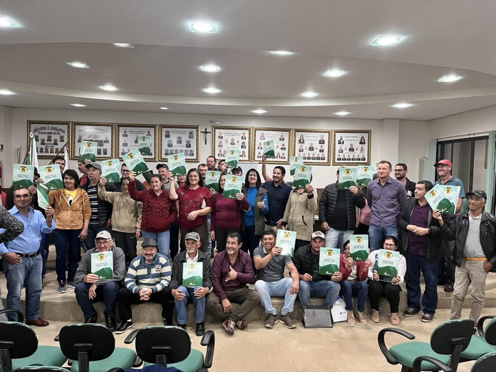 Foram entregues mais de 57 matrículas nesse núcleo. A Assistência Social de Palma Sola em parceria com a ADEHASC já entregou mais de 400 matrículas em todo o município.
