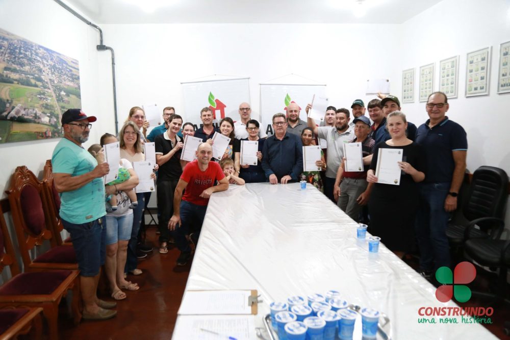Além dos moradores beneficiados com as matrículas, se fizeram presentes membros da administração municipal, representantes da ADEHASC, como o Coordenador Regional do Paraná, Sr. João Luis Panatta.