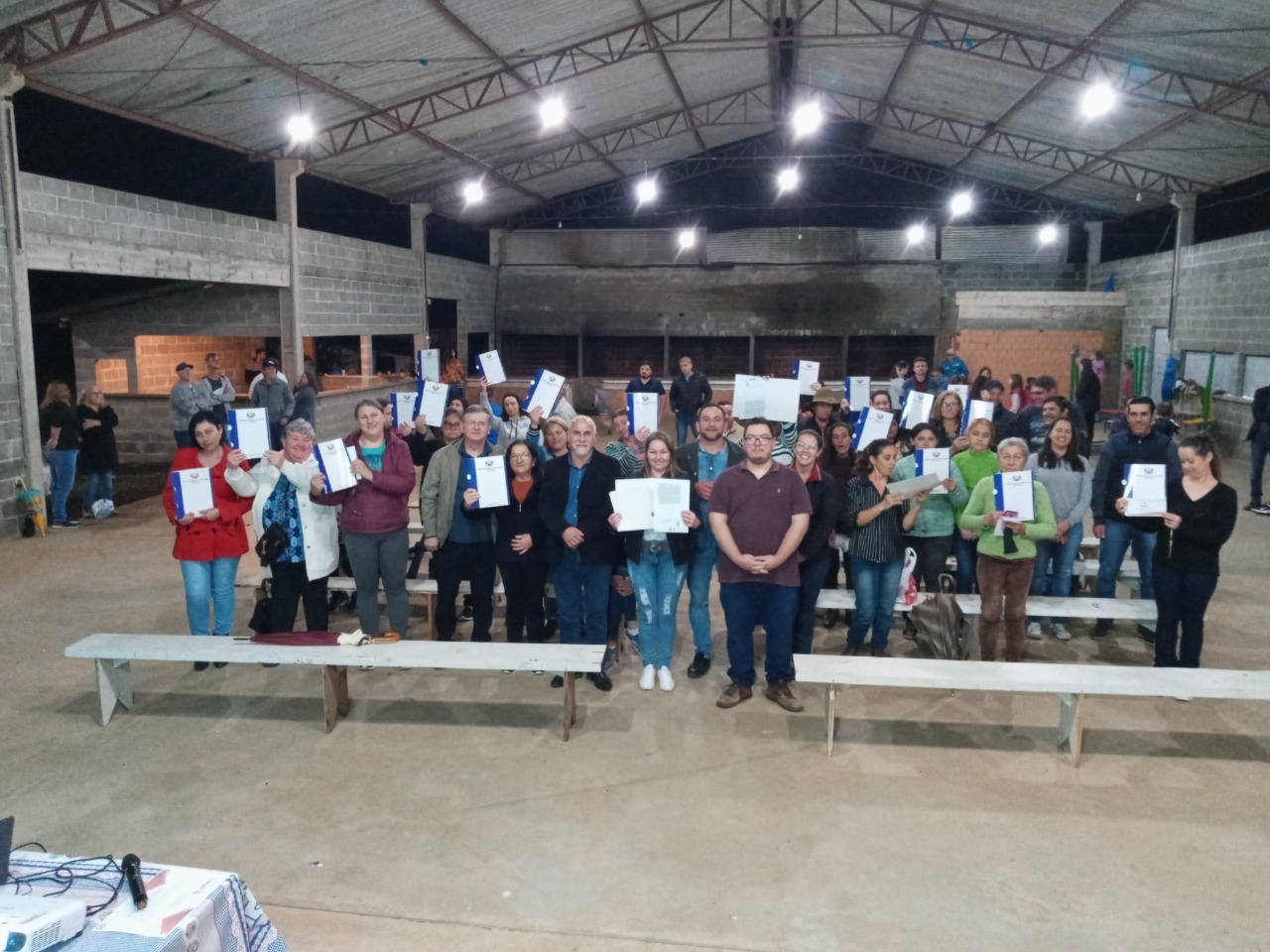 O evento aconteceu no Pavilhão da Igreja do Bairro Maria Anísia e contou com a participação do prefeito municipal, Sr. Sebastião Algacir Dalpra (Xiru) e alguns secretários, dentre eles o engenheiro Rafael que está à frente dos trabalhos do Reurb no município.