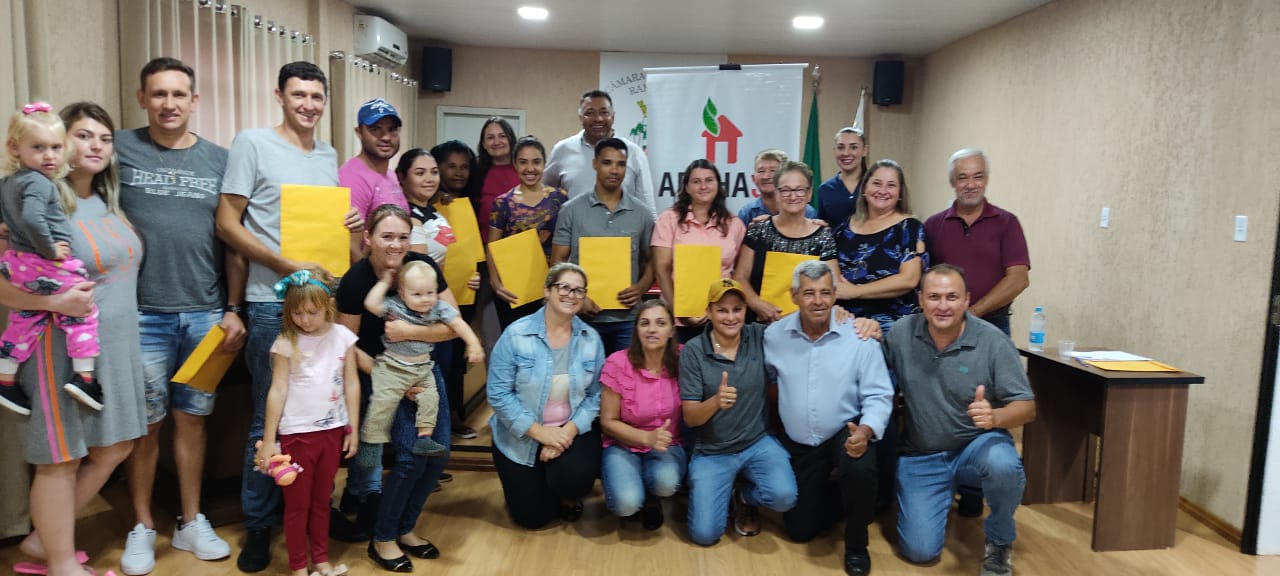 No último dia 09 de março, a ADEHASC, junto com a Prefeitura de Ramilândia/PR, entregou os títulos de propriedade para os moradores do núcleo Mané Rita. Neste ato, 19 matrículas foram entregues.