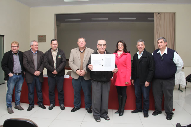 O evento de entrega das matrículas do loteamento Stein contou com a presença do vice-prefeito Luiz Carlos Pazdziora, de integrantes da comissão municipal de regularização fundiária, além da vereadora Soraia Lopes e secretários municipais.