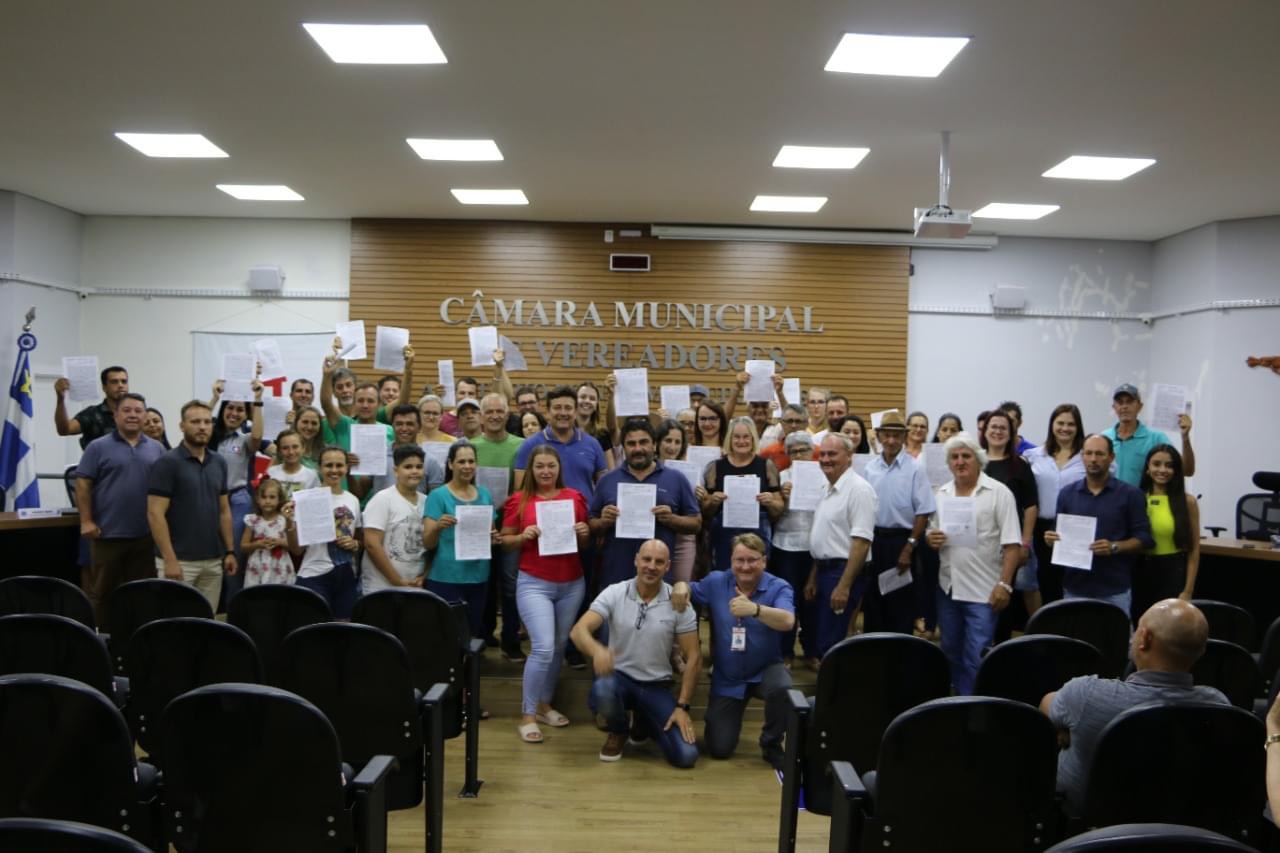 No evento, se fizeram presentes membros da Comissão Municipal de Regularização Fundiária, assim como o Prefeito Municipal, membros da ADEHASC, como o Presidente da Associação, Sr. Djalma Morell, e o Coordenador Geral do Paraná, Sr. João Luis Panatta. E claro, os moradores que foram contemplados com o Título de Propriedade do seu terreno.
